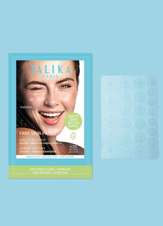 Think you know pimple patches? Think again! We are bringing in a new era of pimple patches with our new Free Skin Patch. These invisible patches absorb pimple fluid while also protecting against external bacteria and nasties. Delivering a blend of pimple-fighting ingredients; salicylic acid, niacinamide and azelaic to unclog pores, reduce inflammation and soothe the skin, speeding up the healing process and making spots disappear quicker. The patches come in a 25 pack in 3 different sizes and are fully transparent so you can wear them to work, to bed, wherever!