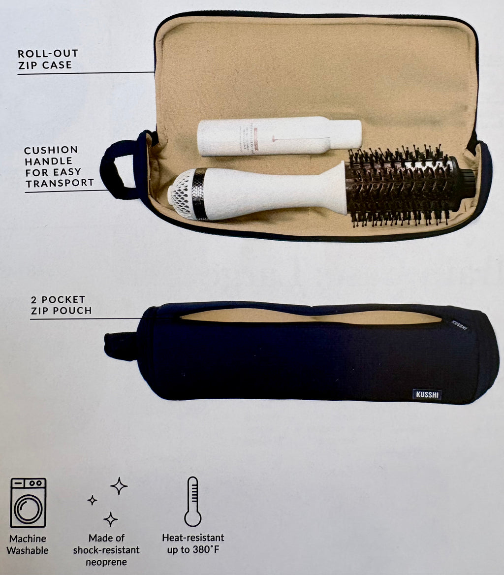 Meet the perfect companion for your hot tools. Heat-resistant up to 380F, the interior lets you safely lay your tool down while it cools. With two exterior zipper pockets to store your hair ties, clips and small accessories, this compact bag keeps everything organized and protected on the go.